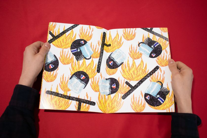 Une explosion de couleurs et de colère contre notre cher président. Les gilets jaunes, le coronavirus, les retraites, les violences policières… passés à la sauce cathartique psychédélique!